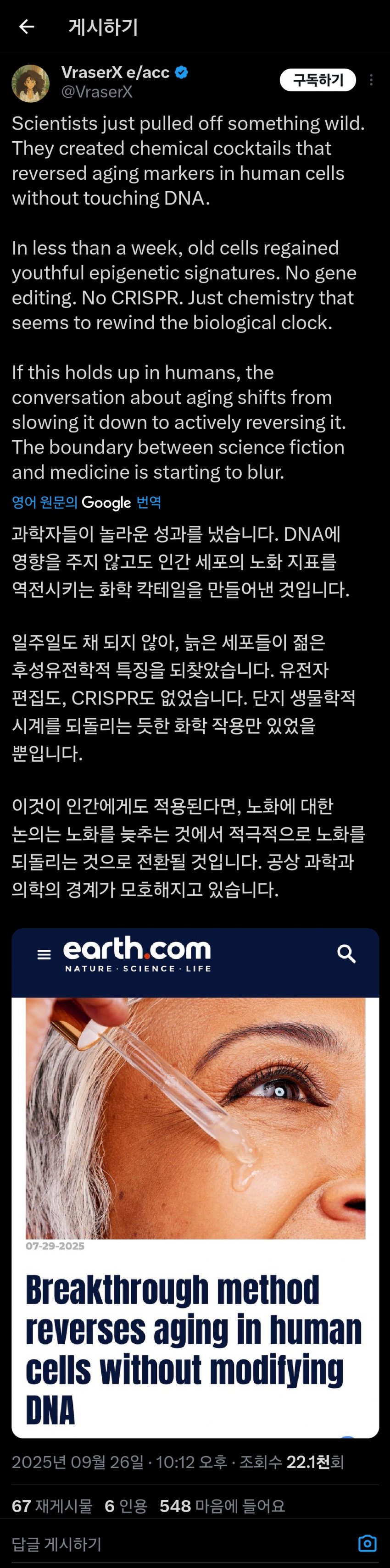 이것이 인간에게도 적용된다면, 노화에 대한 논의는 노화를 늦추는 것에서 적극적으로 노화를 되돌리는 것으로 전환될 것입니다. 공상 과학과 의학의 경계가 모호해지고 있습니다.