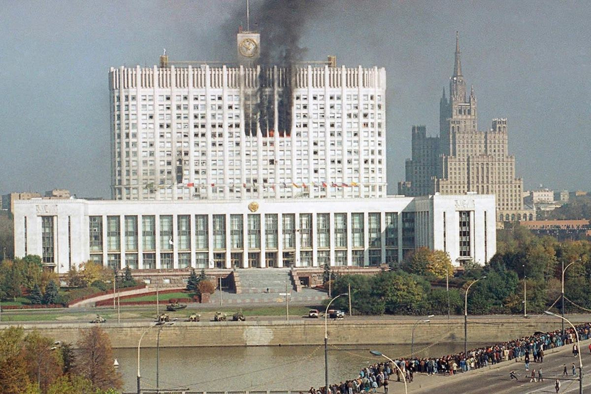 1991년 소련 해체 후, 소련으로부터 독립한 러시아 공화국은 기존의 소비에트 체제에서 벗어나 새로운 의회를 만들 필요가 있었다. 당시 대통령이었던 보리스 옐친은 최고회의의 권한을 줄이고, 행정부의 권한을 강화하는 방향으로 헌법을 개정하려 했다.