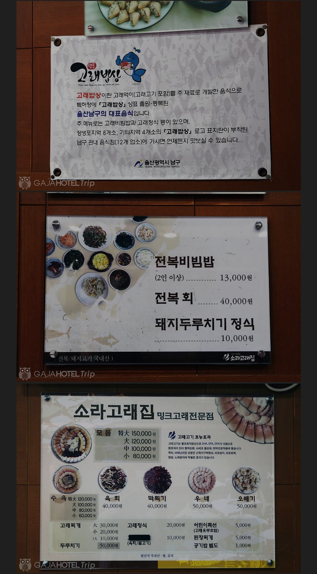 주 메뉴로는 고래비빔밥과 고래정식 등이 있으며,